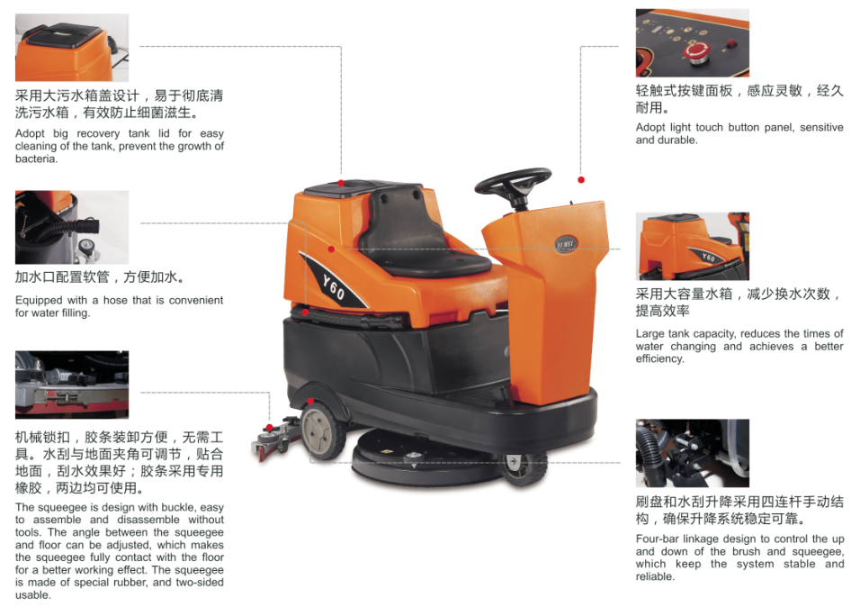 -升降系統:刷盤(pán)和水刮升降才用四連桿手動(dòng)結構,確保升降系統穩定可靠。