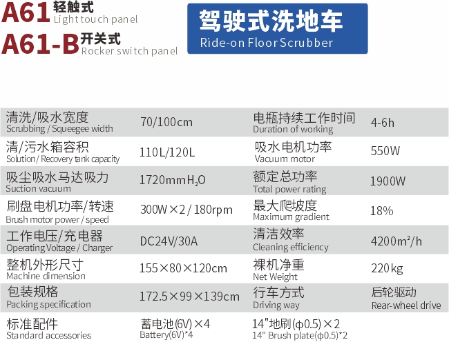 -升降系統:刷盤(pán)和水刮升降才用四連桿手動(dòng)結構,確保升降系統穩定可靠。