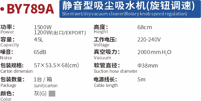 全系列采用高級靜音輪設計,移動(dòng)無(wú)噪音,比普通吸塵吸水機噪音低15dB。