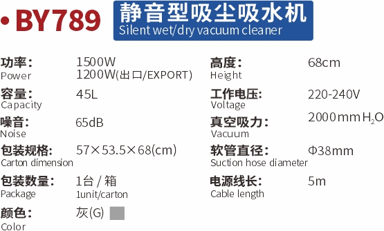 全系列采用高級靜音輪設計,移動(dòng)無(wú)噪音,比普通吸塵吸水機噪音低15dB。