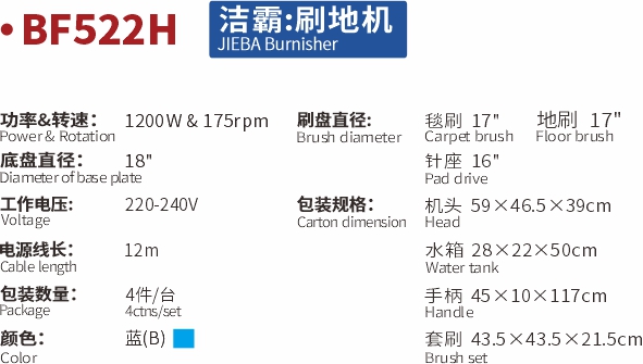 -具有洗地、洗地毯、起蠟、低速拋光等四大功能,能同時(shí)滿(mǎn)足顧客的多種清潔需要。