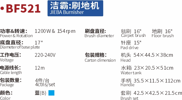 -具有洗地、洗地毯、起蠟、低速拋光等四大功能,能同時(shí)滿(mǎn)足顧客的多種清潔需要。